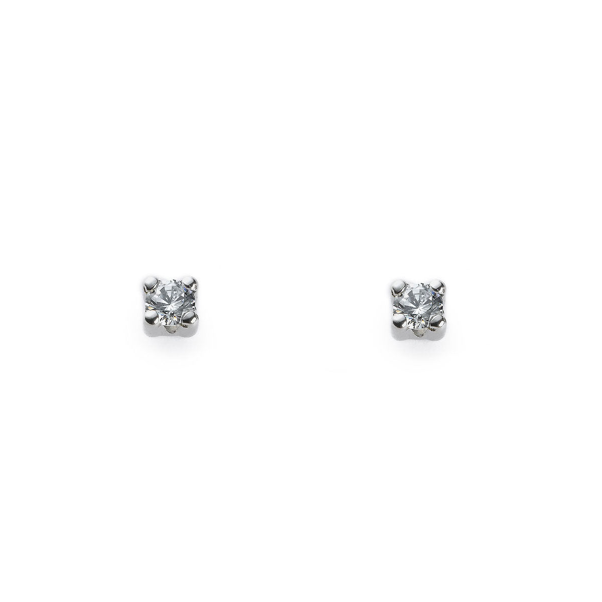 Pendientes Bebe-Niña Oro Blanco 9K Garra Circonita 4 mm Brillo