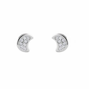 Pendientes Bebe-Niña Oro Blanco 9K Luna Circonitas Brillo