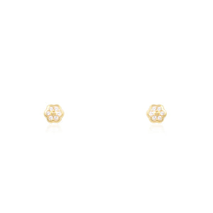 Pendientes Bebe Oro Amarillo 18K Flor Margarita Circonita Brillo