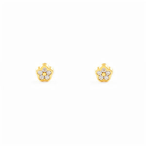 Pendientes Bebe Oro Amarillo 18K Flor Margarita Circonitas Brillo