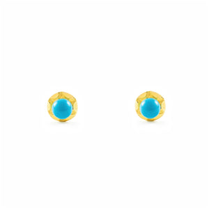 Pendientes Bebe Oro Amarillo 18K Orla Redondo Turquesa 3 mm Tallados