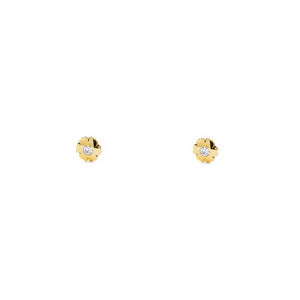 Pendientes Bebe Oro Amarillo 9K Flor Circonita Brillo