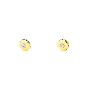 Pendientes Bebe Oro Amarillo 9K Flor Circonita Brillo
