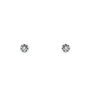 Pendientes Bebe Oro Blanco 18K Redondo Circonita Tallados