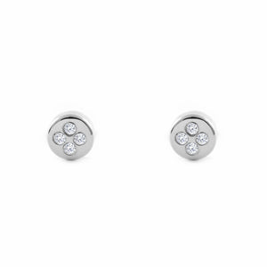 Pendientes Bebe Oro Blanco 18K Redondo Circonitas Brillo