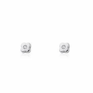Pendientes Bebe Oro Blanco 9 Quilates (375/1000) Trebol Circonita