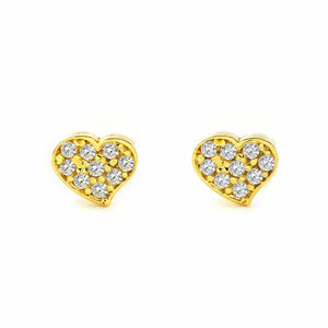 Pendientes Mujer-Niña Oro Amarillo 9K Corazón Circonita Brillo