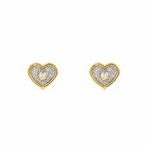 Pendientes Mujer-Niña Oro Amarillo 9K Corazón Circonita Brillo y Textura
