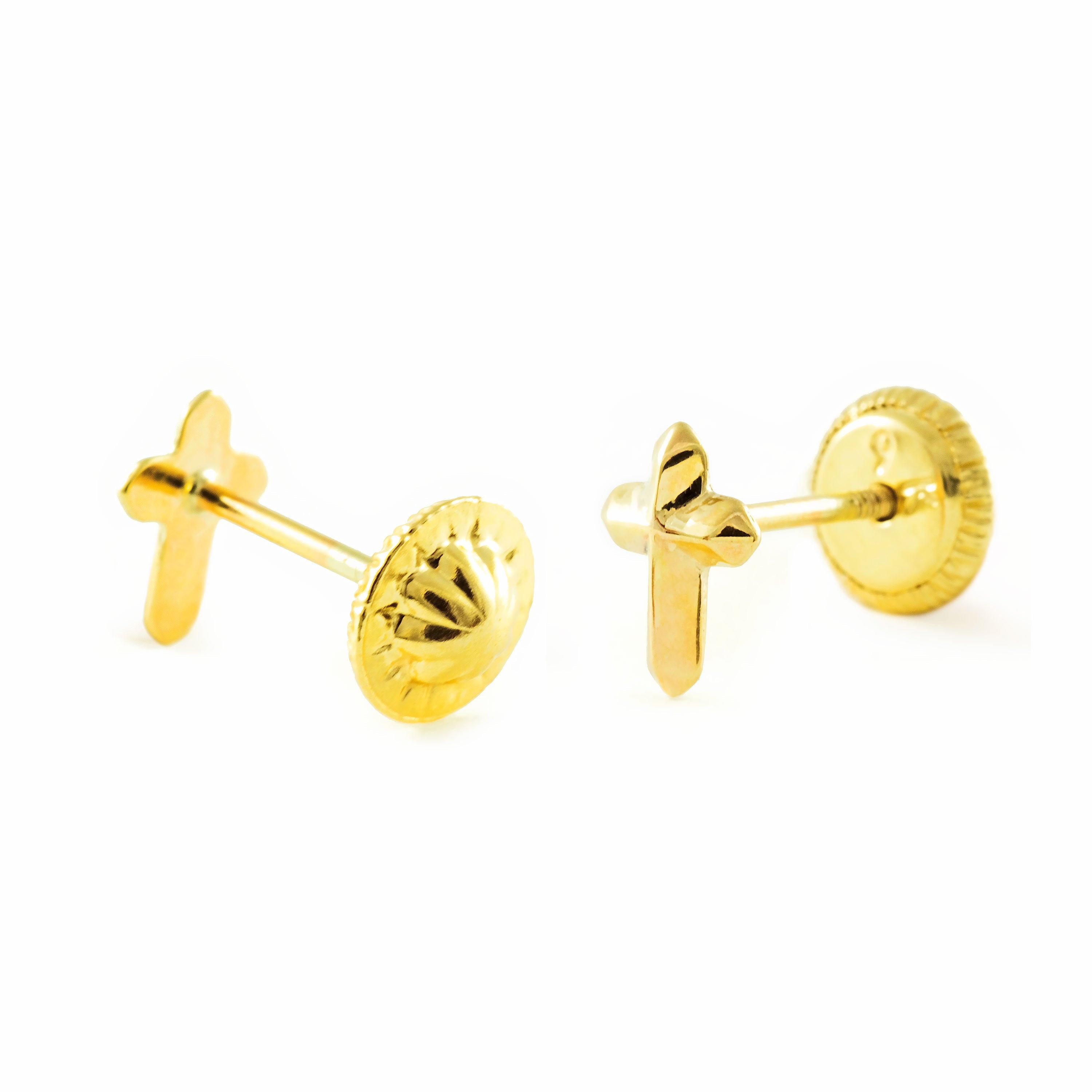 Pendientes Mujer-Niña Oro Amarillo 9K Cruz Brillo
