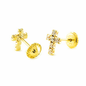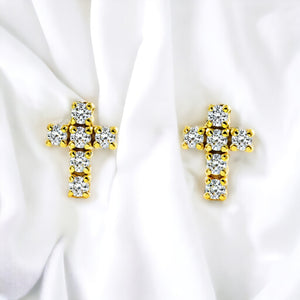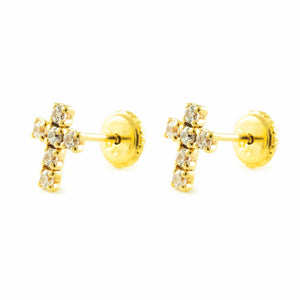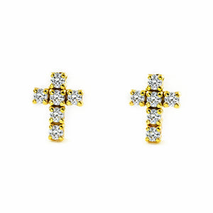 Pendientes Mujer-Niña Oro Amarillo 9K Cruz Circonita Brillo