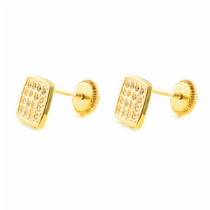 Pendientes Mujer-Niña Oro Amarillo 9K Cuadrado Circonita Brillo