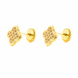 Pendientes Mujer-Niña Oro Amarillo 9K Cuatrebol Circonita Brillo