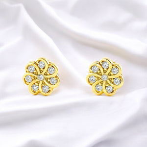 Pendientes Mujer-Niña Oro Amarillo 9K Flor Circonita Brillo