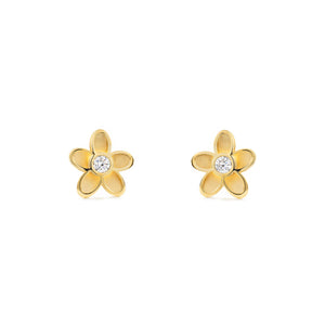 Pendientes Mujer-Niña Oro Amarillo 9K Flor Margarita Circonita Mate y Brillo