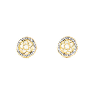 Pendientes Mujer-Niña Oro Amarillo 9K Nacar Flor Circonita Brillo