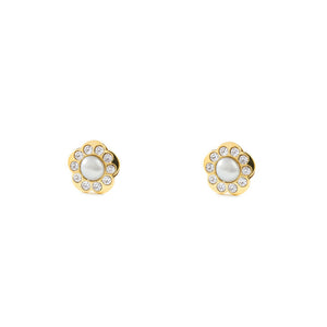 Pendientes Mujer-Niña Oro Amarillo 9K Perla Botón 3,5 mm Flor Margarita Circonitas Brillo