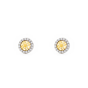 Pendientes Mujer-Niña Oro Bicolor 9K Redondo Circonita Brillo