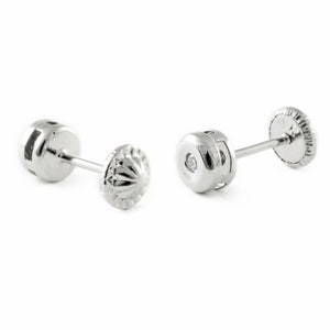 Pendientes Mujer-Niña Oro Blanco 9K Chatón Redondo Diamante Brillo