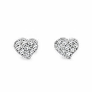 Pendientes Mujer-Niña Oro Blanco 9K Corazón Circonita Brillo