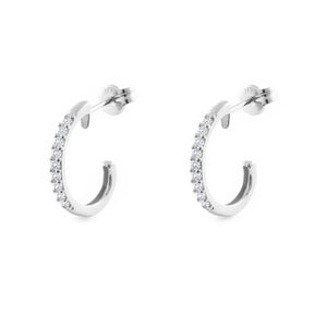 Pendientes Mujer Oro Blanco 9K Medio Aro Circonitas Brillo