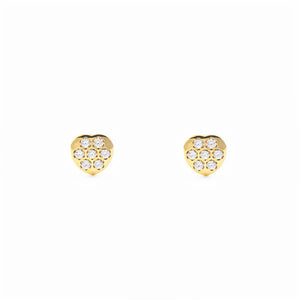 Pendientes Niña Oro Amarillo 18K Corazón Circonitas Brillo