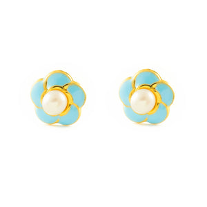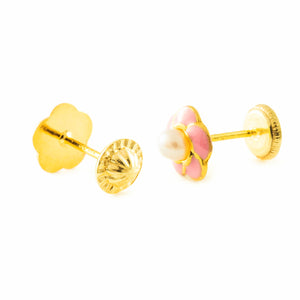 Pendientes Oro 18 Quilates (750/1000) Flor Esmalte Perla Redonda 3 mm