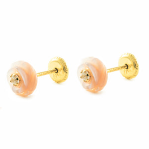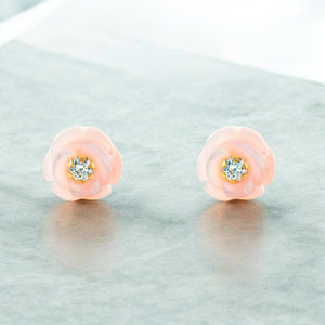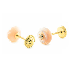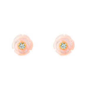 Pendientes Niña Oro Amarillo 18K Nacar Flor Circonita Brillo
