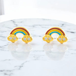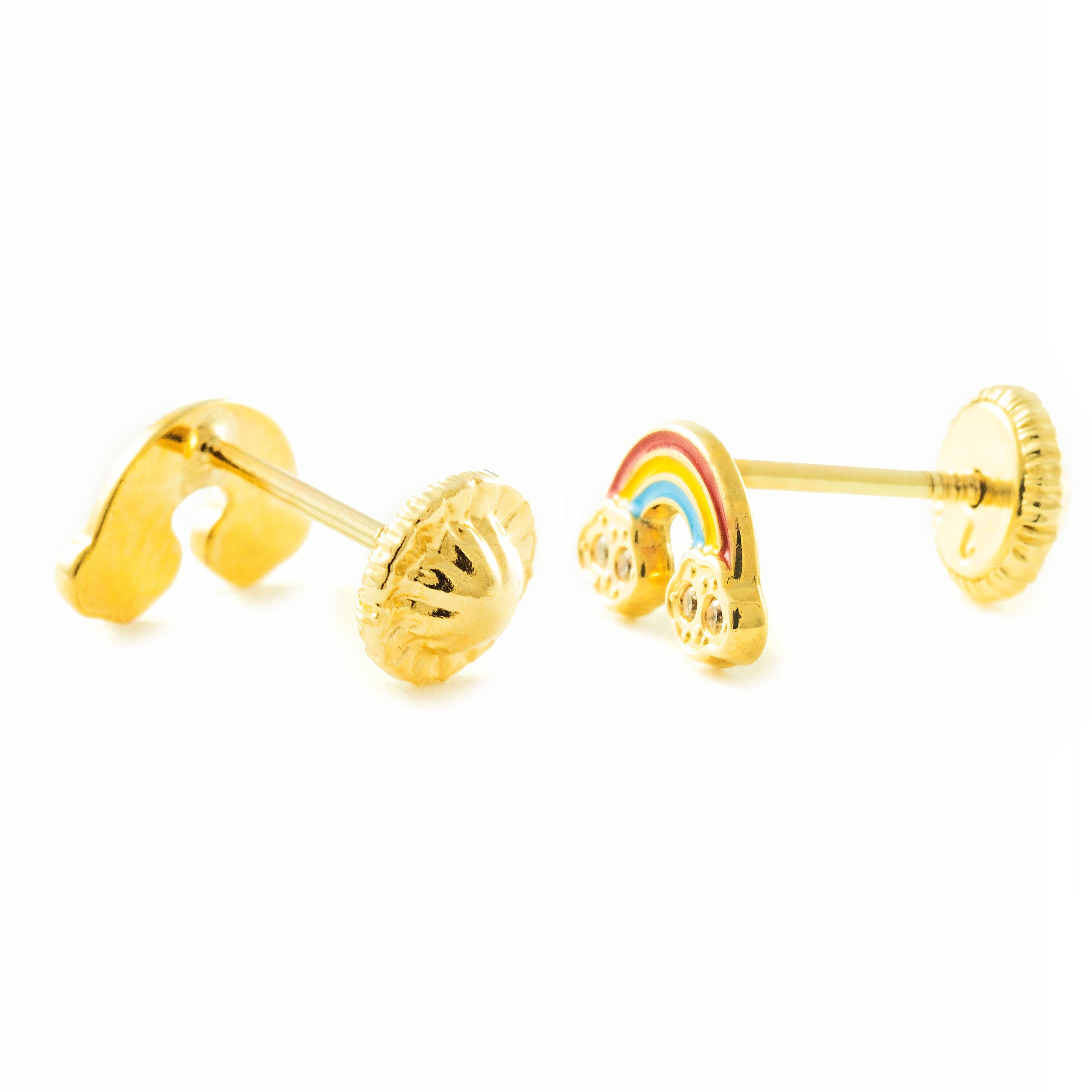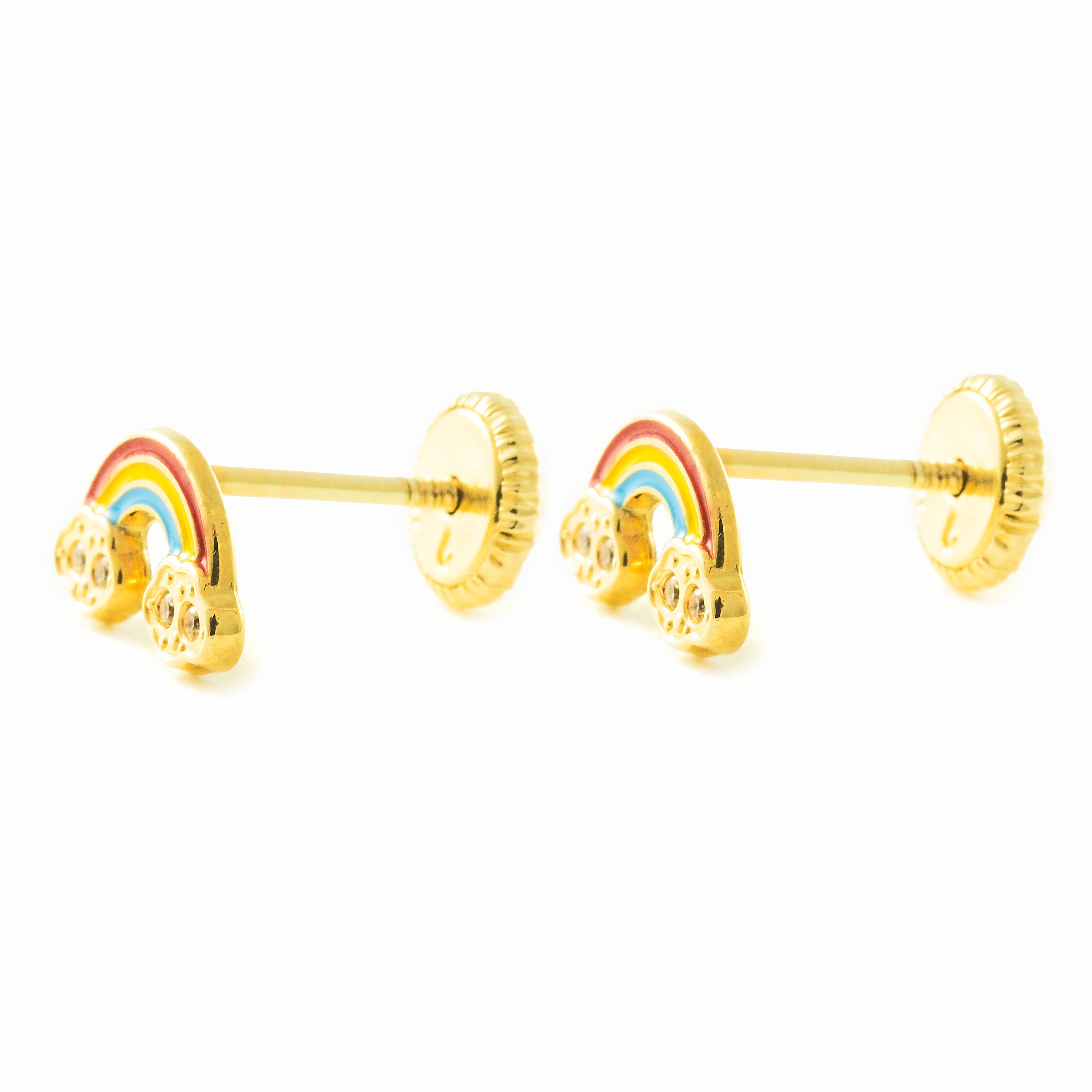 Pendientes Niña Oro Amarillo 9K Arco Iris Esmalte Multicolor Circonita Brillo