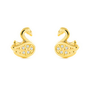 Pendientes Niña Oro Amarillo 9K Cisne Circonitas Brillo