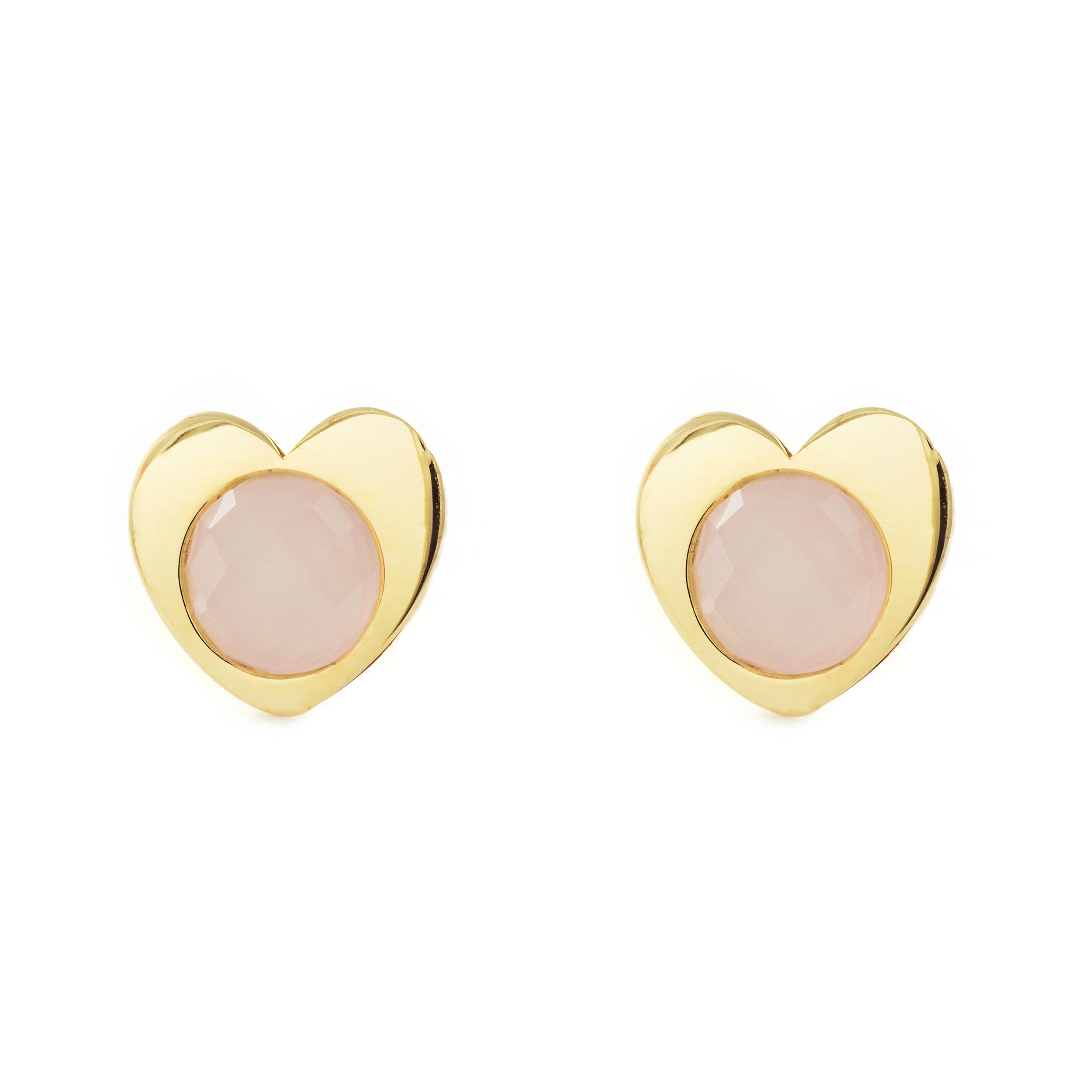 Pendientes Niña Oro Amarillo 9K Corazón Rosa Brillo