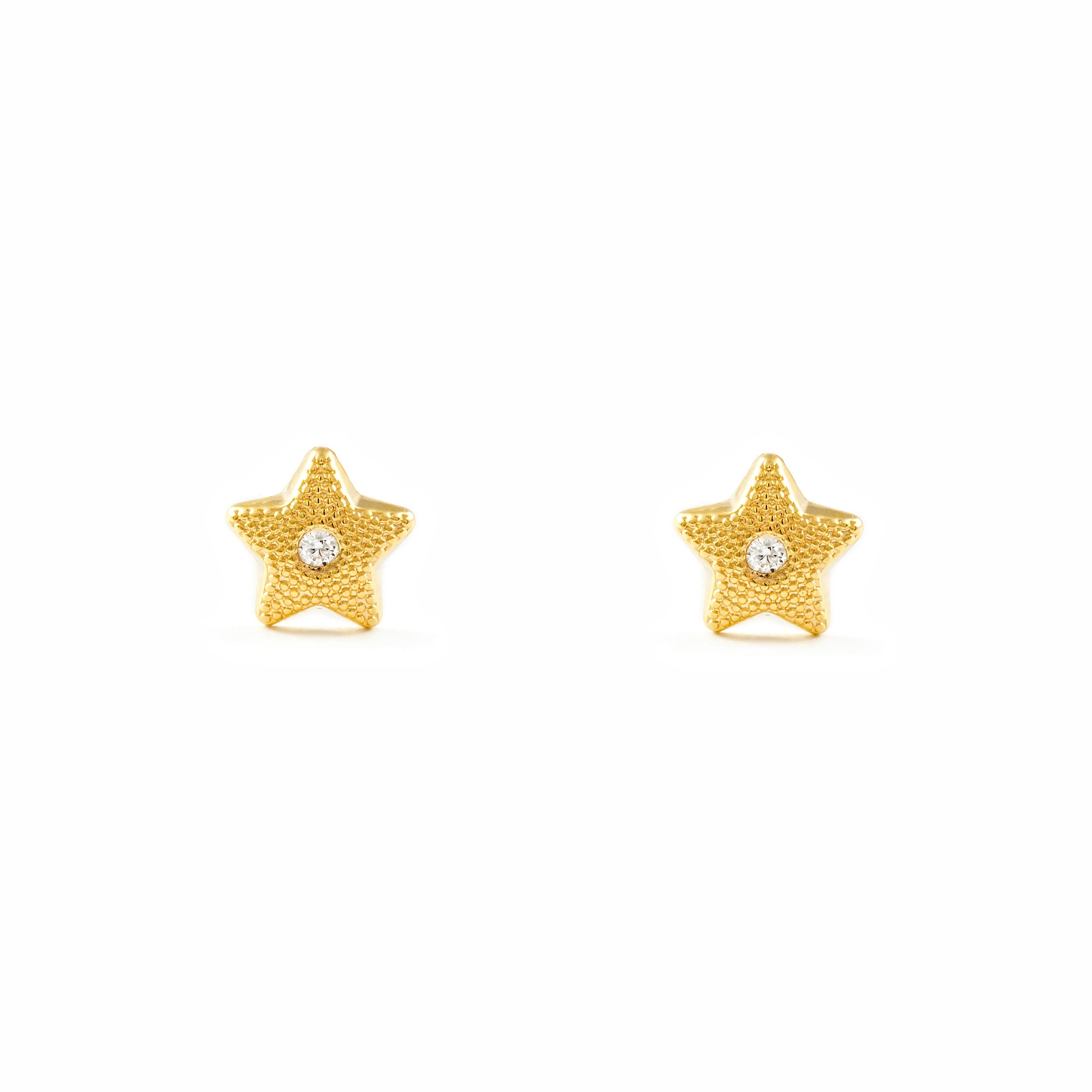 Pendientes Niña Oro Amarillo 9K Estrella Circonita Texturado