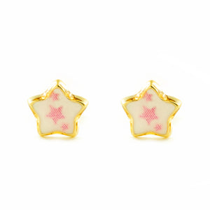 Pendientes Niña Oro Amarillo 9K Estrella Esmalte Rosa-Blanco Brillo