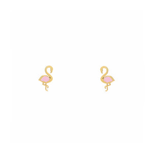 Pendientes Niña Oro Amarillo 9K Flamenco Esmalte Rosa Brillo