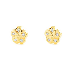 Pendientes Niña Oro Amarillo 9K Flor Circonitas Brillo