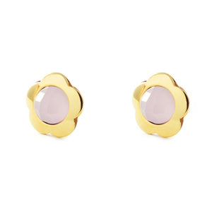 Pendientes Niña Oro Amarillo 9K Flor Rosa Brillo