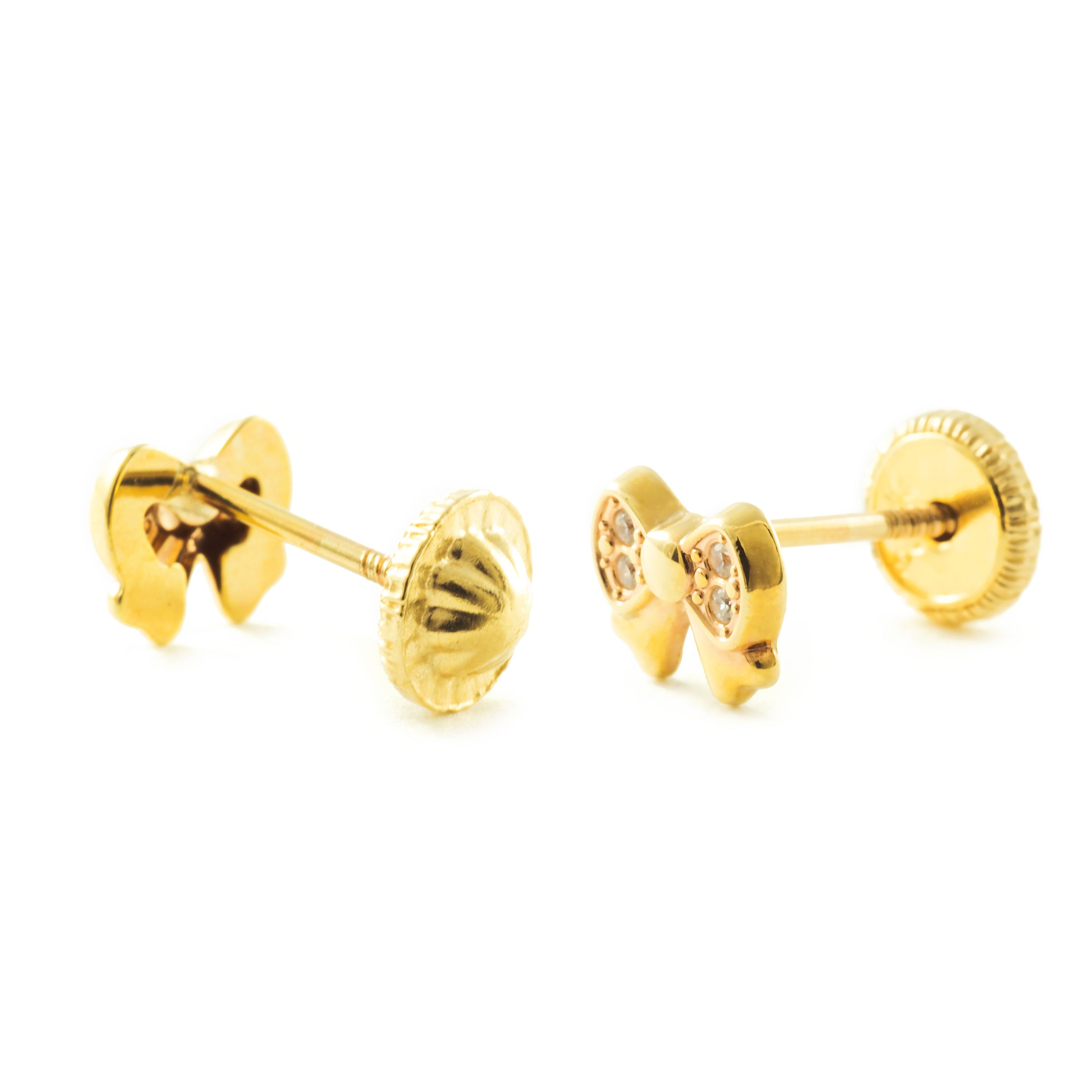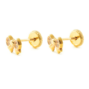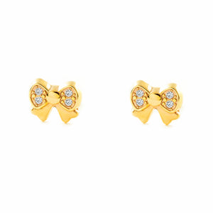 Pendientes Niña Oro Amarillo 9K Lazo Circonita Brillo