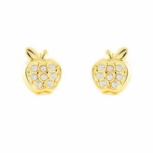 Pendientes Niña Oro Amarillo 9K Manzana Circonitas Brillo
