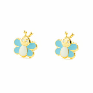 Pendientes Niña Oro Amarillo 9K Mariposa Esmalte Azul-Blanco Brillo