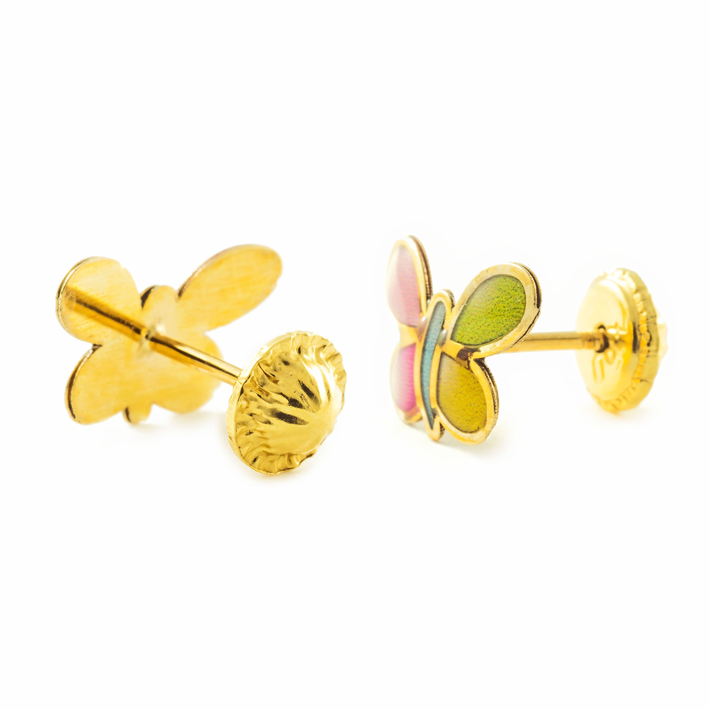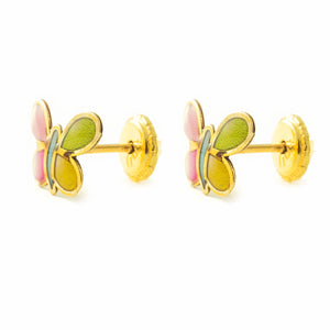 Pendientes Niña Oro Amarillo 9K Mariposa Esmalte Multicolor Brillo