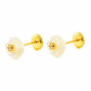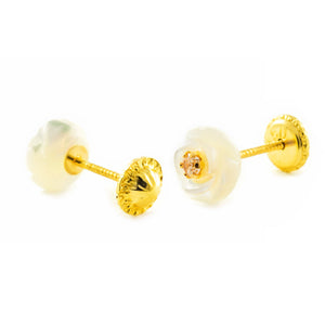 Pendientes Niña Oro Amarillo 9K Nacar Flor Circonita Brillo