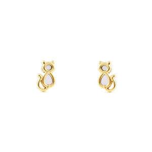 Pendientes Niña Oro Amarillo 9K Nacar Gato Brillo