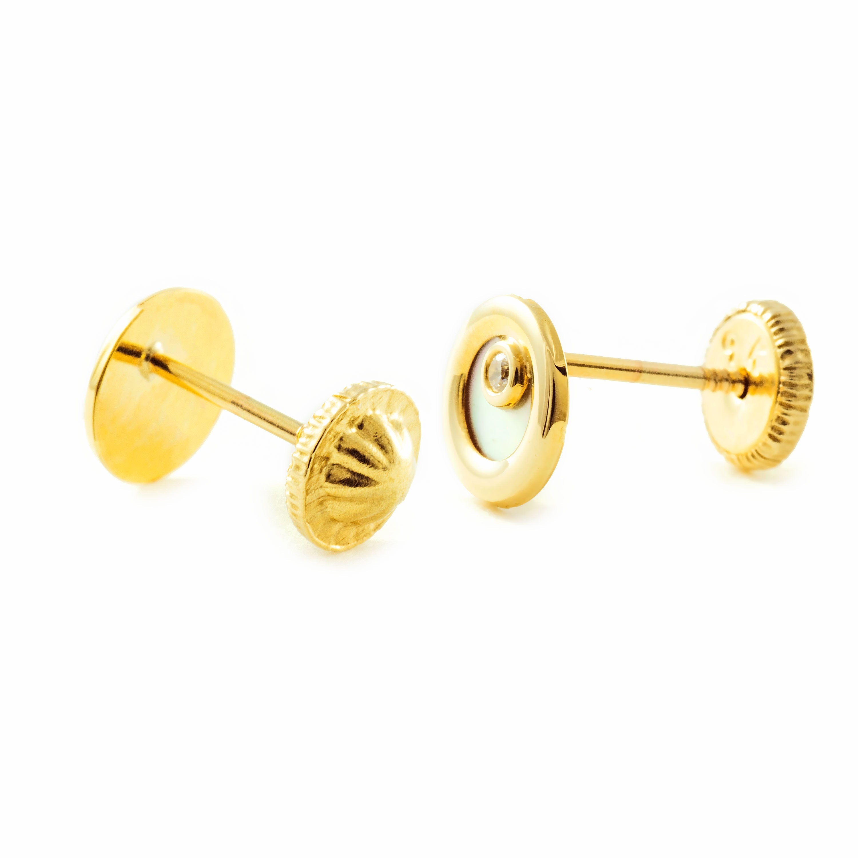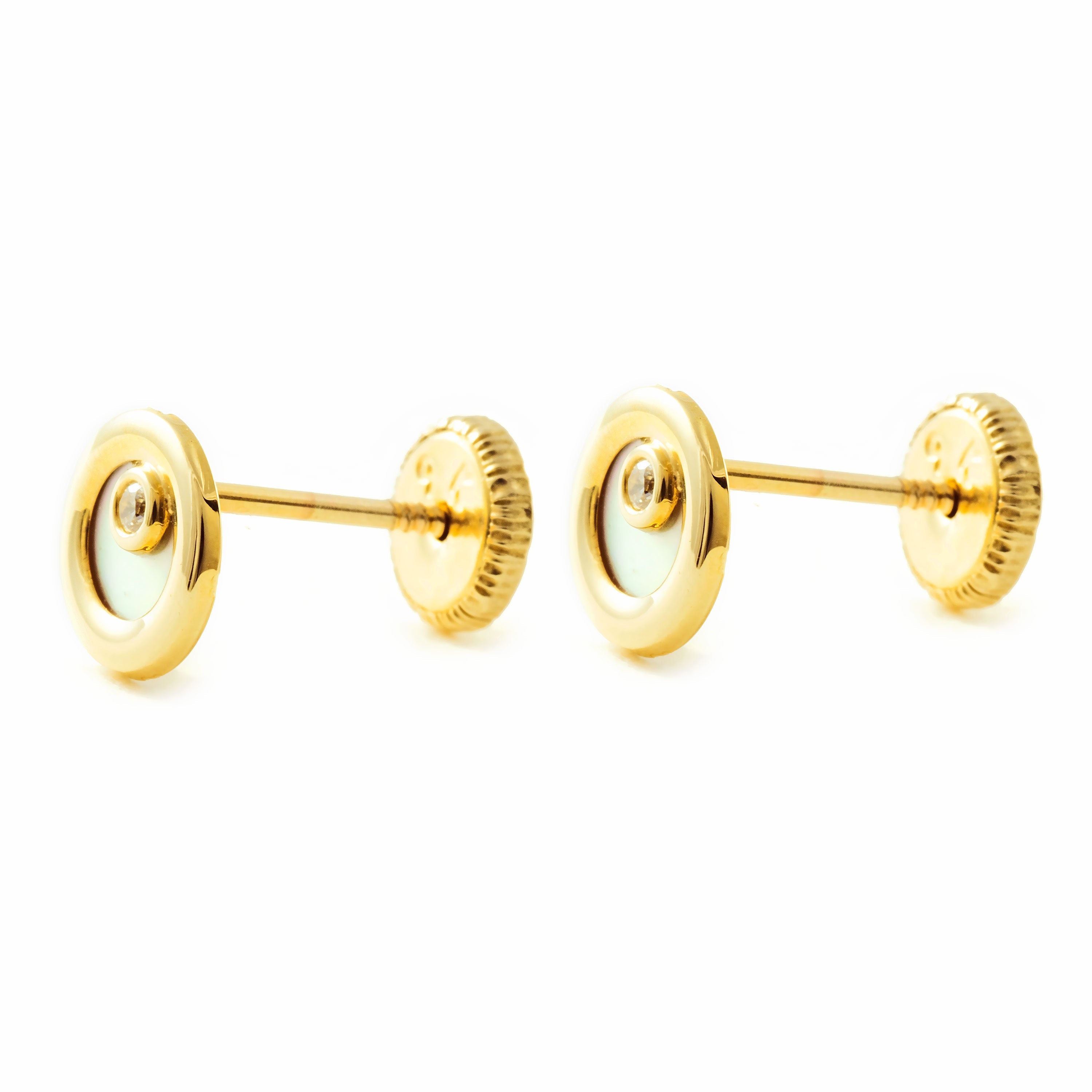 Pendientes Niña Oro Amarillo 9K Nacar Redondo Circonita Brillo
