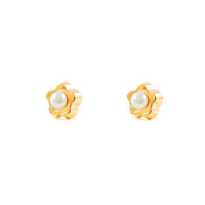 Pendientes Niña Oro 9 Quilates (375/1000) Flor Perla Botón 3,5 mm