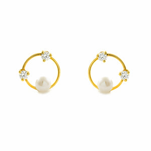 Pendientes Niña Oro Amarillo 9K Perla Botón 4 mm Circonita Brillo