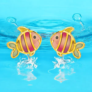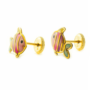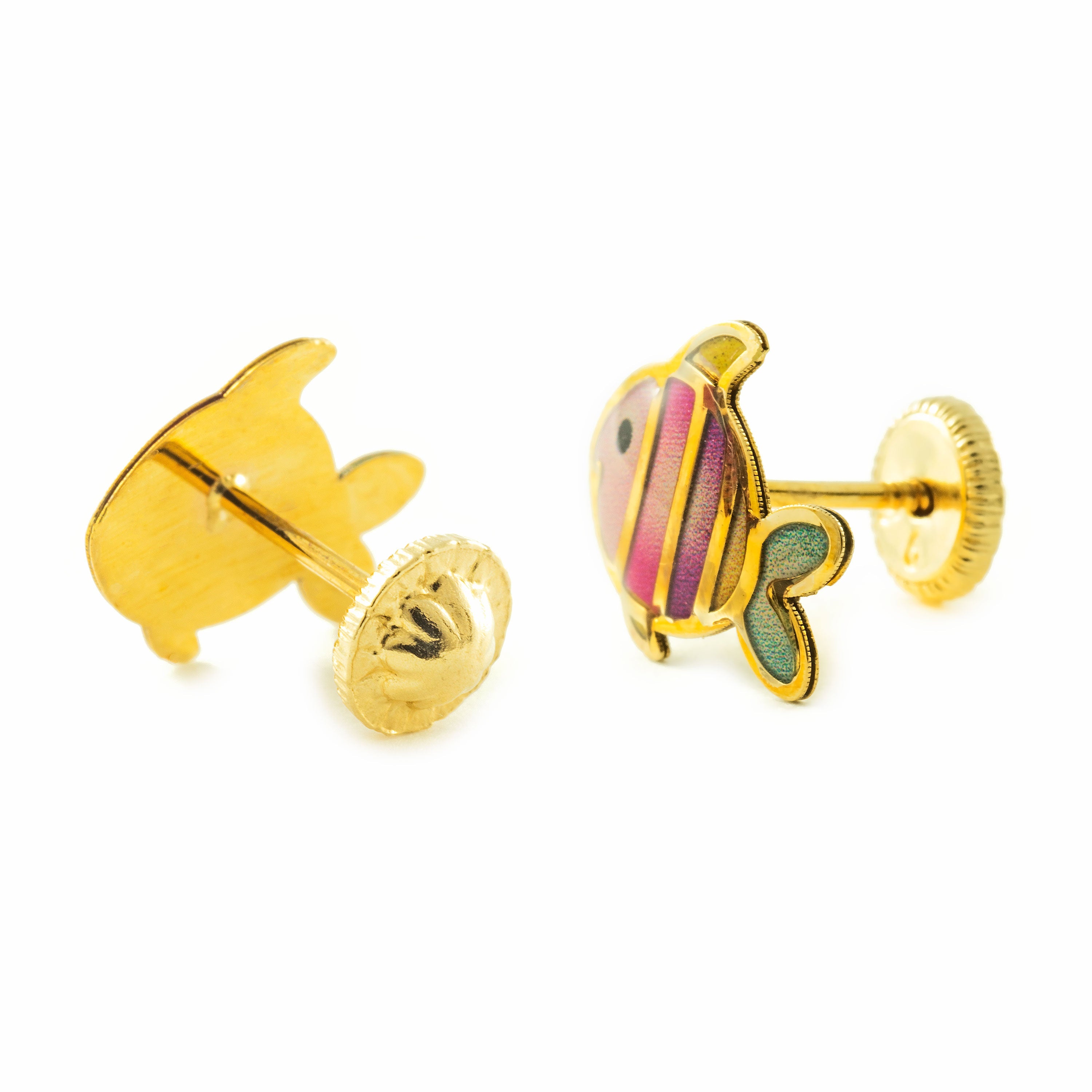 Pendientes Niña Oro Amarillo 9K Pez Esmalte Multicolor Brillo