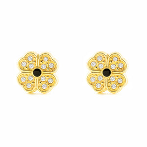 Pendientes Niña Oro Amarillo 9K Trebol 4 hojas Circonitas Brillo