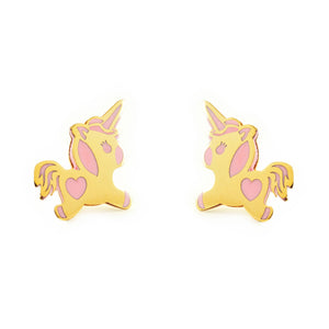 Pendientes Niña Oro Amarillo 9K Unicornio Esmalte Rosa Brillo