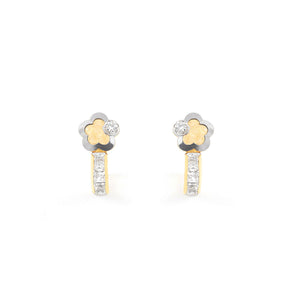 Pendientes Niña Oro Bicolor 18 Quilates (750/1000) Flor Circonita