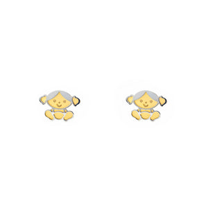 Pendientes Niña Oro Bicolor 18 Quilates (750/1000) Niña Mate y Brillo