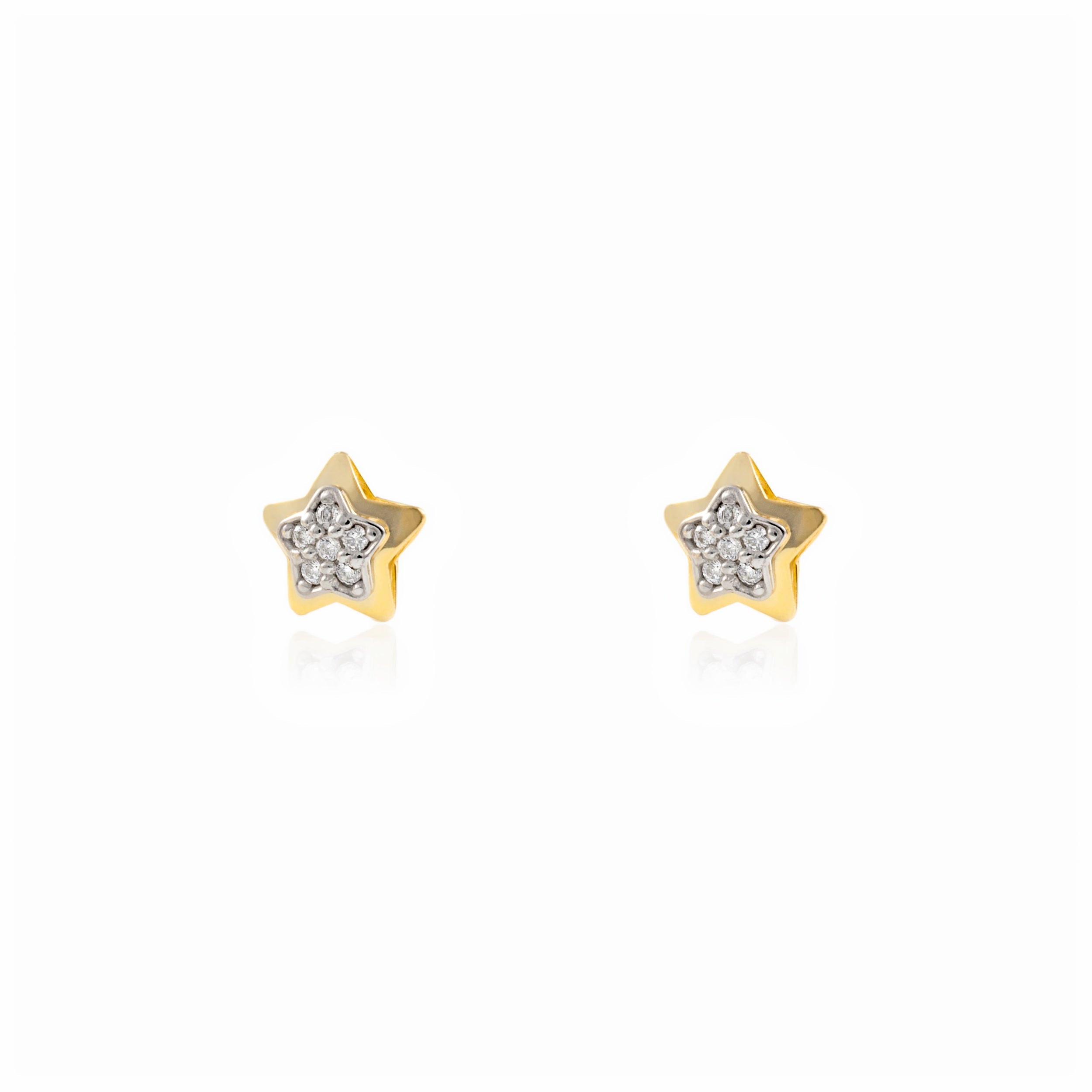 Pendientes Niña Oro Bicolor 9K Estrella Circonitas Brillo